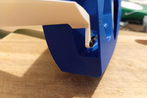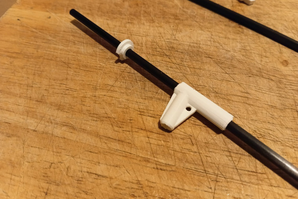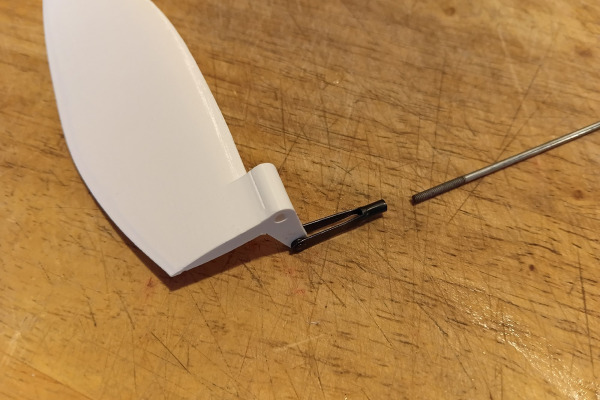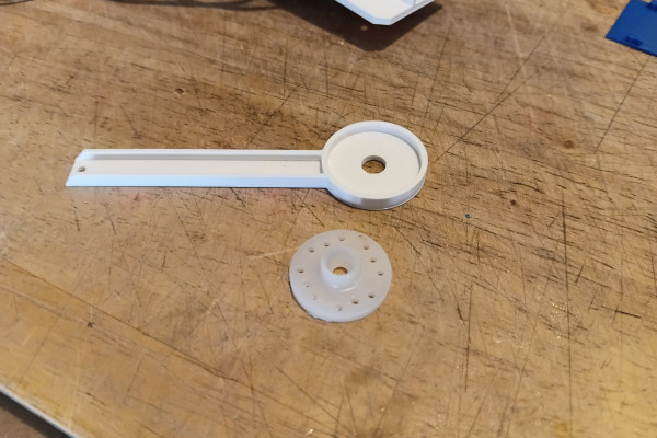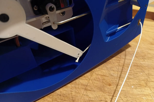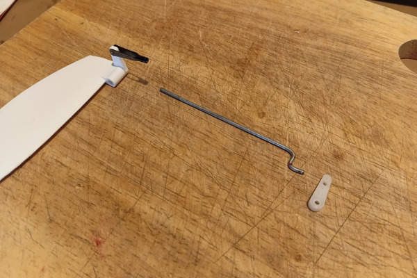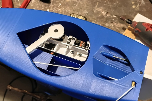 The rudder and arm are integrated into one solid printed part for strength and simplicity.