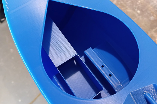 - Hull printed in 3 parts, printed rig fittings