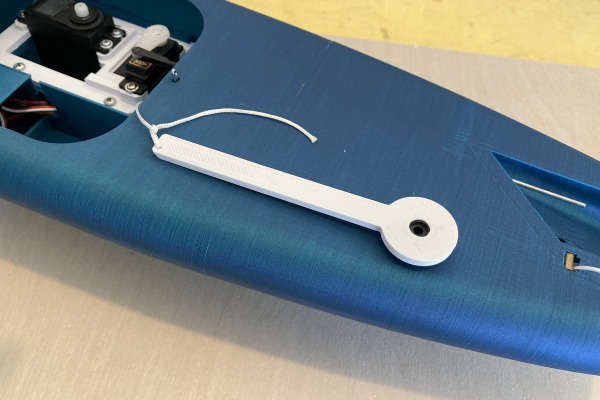 The electrics for this boat are inexpensive and easy to source worldwide. Instead of costly drum winch servos, we use standard servos with long arms—keeping builds simple and affordable, a core Racing Sparrow principle.