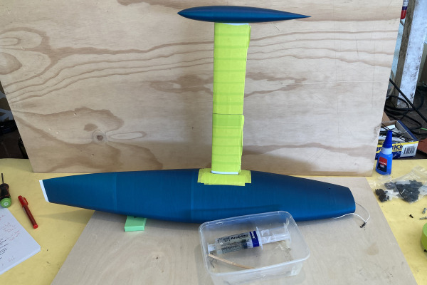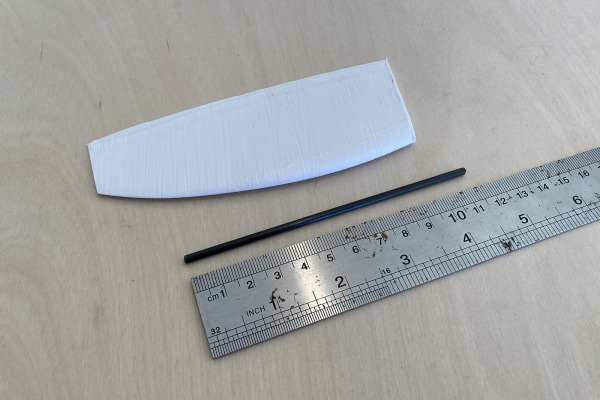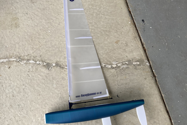 All rigging parts superglue to 1m carbon spars (readily available online). The keel is a two-piece NACA012 profile with carbon support, and the bulb is a two-piece torpedo filled with lead shot.